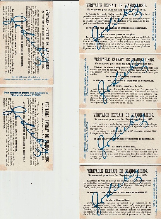 Bolo zdokumentovaných viac ako 1 900 Liebigových kariet, ktoré obsahujú obrázky zvierat, udalosti, krajiny alebo portréty historických osobností