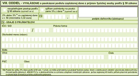 2% - VIII. Oddiel - Vyhlásenie o poukázaní podielu zaplatenej dane z príjmov fyzickej osoby podľa § 50 zákona.