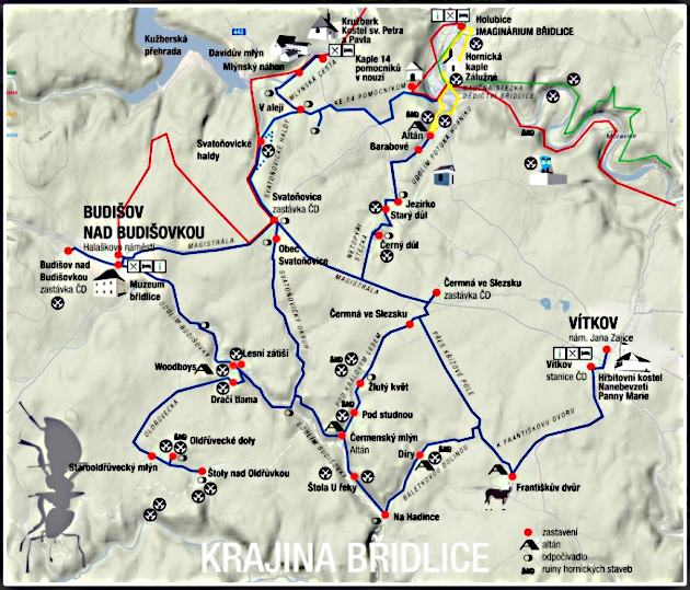 Poznámka: nielen vo vymedzenom území Krajiny břidlice, ale aj v jej bezprostrednom okolí sa vyvíjajú aktivity spojené s bývalou