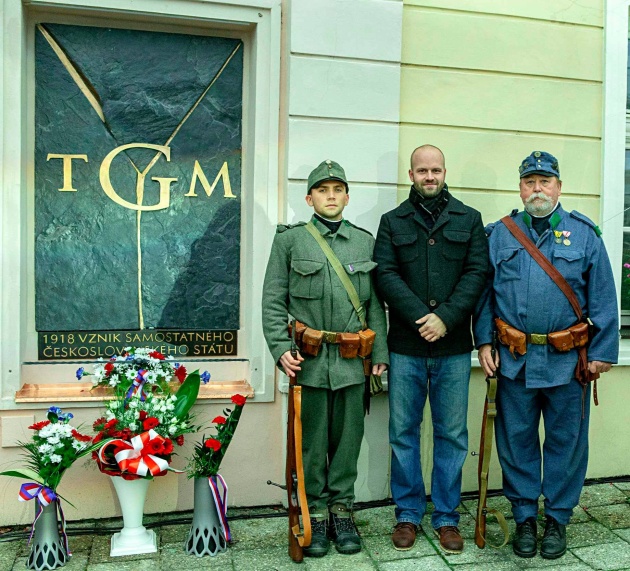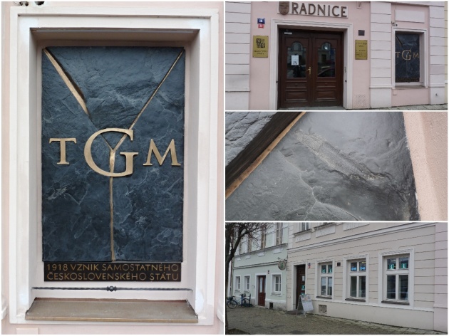 bridlicová doska v kombinácii s bronzom, venovaná T.G.Masarykovi a ktorá bola slávnostne odhalená pri príležitosti 100. výročia vzniku samostatnej Československej