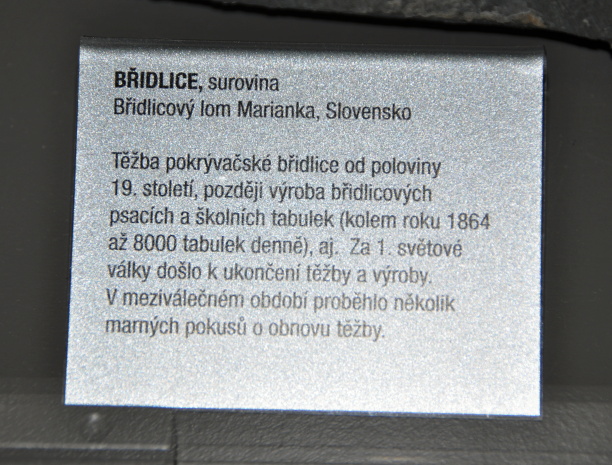 Expozícia múzea je špecializovaná na výrobu bridlicových školských písacích tabuliek.