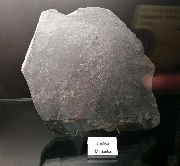 Jedna vzorka marianskej bridlice je umiestnená v Baníckej expozícii v Pezinku! Je súčasťou expozície "Minerálov, fosílií a hornín Malých Karpát.