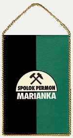 rubová strana: zvislé zeleno-čierny pás s logom spolku,