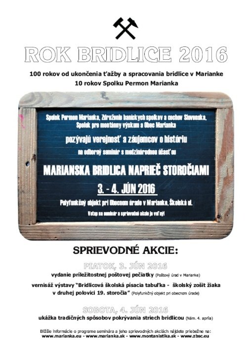 sme zorganizovali pri príležitosti 100 rokov od ukončenia priemyselnej ťažby a spracovania bridlice v Marianke a 10. výročia založenia Spolku Permon Marianka.