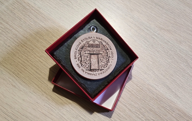 Turistická známka č. 666 osadená v bridlici a v darčekovej krabičke. Výrobok f. Crela s.r.o. - NEDOSTUPNÉ.